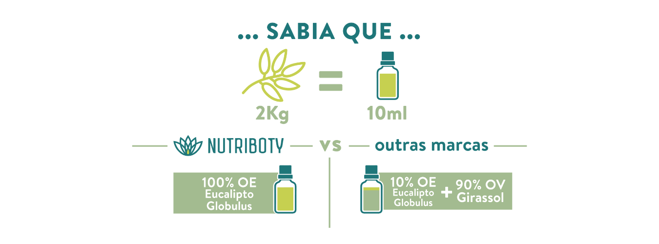 - O Difusor Nutriboty é o complemento perfeito para este óleo permitindo a prática da aromaterapia, a inalação dos seus componentes terapêuticos para promoção da saúde e bem-estar. Humidifica também o ar, reduz a presença de bactérias e deixa um aroma maravilhoso em casa!